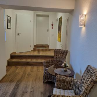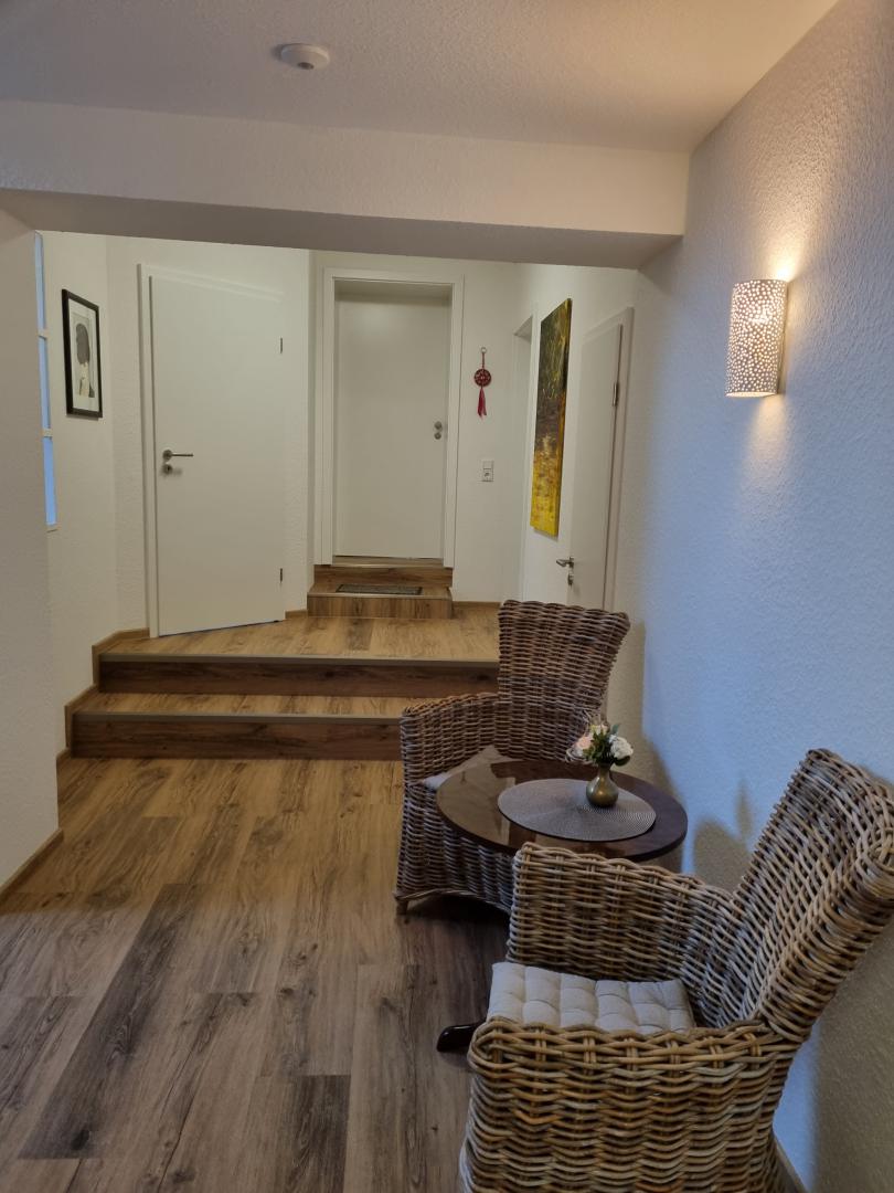 Alle Wohnungen sind hochwertig ausgestattet, enthalten Einbauküchen, Boxspringbetten, sowie große Smart TV, Fön und teilweise Regenwaldduschen. Ein Gebäude wurde 2017 neu errichtet und ein anderer Teil ist 2023 komplett im 300 m² grossen Dachgeschoß des Gebäudes entstanden. Sie befinden sich auf einer ehemaligen Hofstelle, in wunderschöner ländlicher Umgebung. Der Holzrahmenbau sorgt für ein angenehmes Wohnklima und wird über eine Fußbodenheizung beheizt. Die Fenster sind dreifach verglast, wir haben besonders auf Schallschutz Wert gelegt, damit man hier gut zur Ruhe kommen kann. Das Gebäude wird mit regenerativer Energie versorgt, E-Fahrzeuge können an der Wallbox geladen werden. Der Parkplatz ist direkt vor dem Haus.